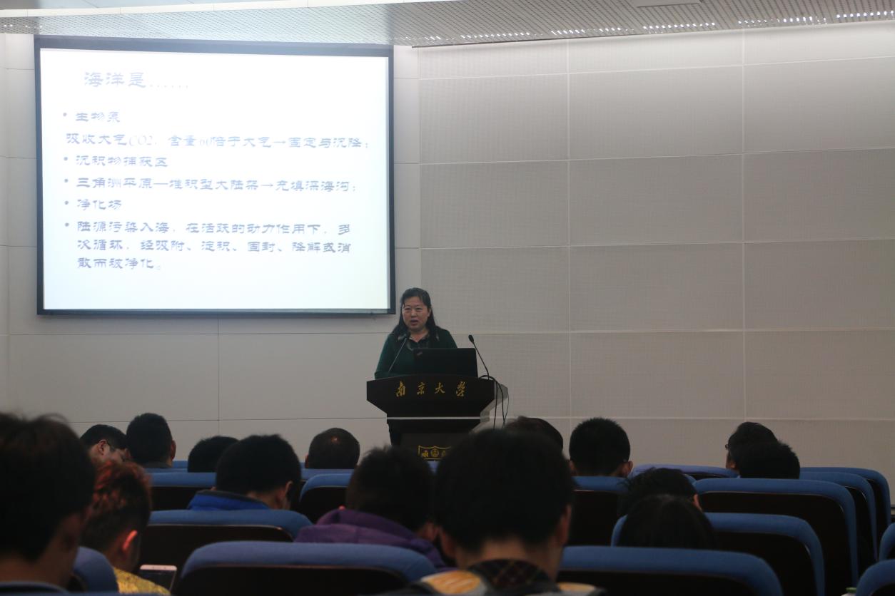 海洋科学系主任葛晨东老师为了让大家更深入地认识海洋科学,她以海洋实习的精彩照片和海洋科学当今研究的最新领域,向同学们介绍了浩瀚无边的海洋世界,引发了全场同学的强烈兴趣。
