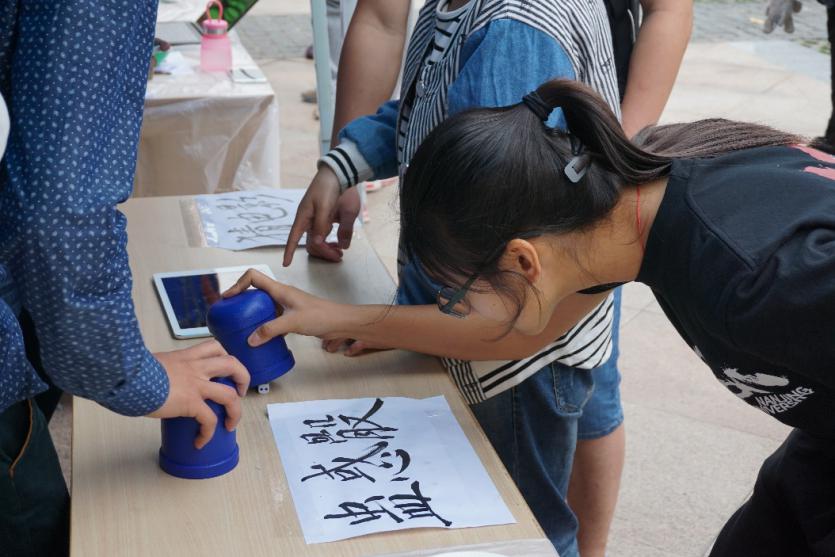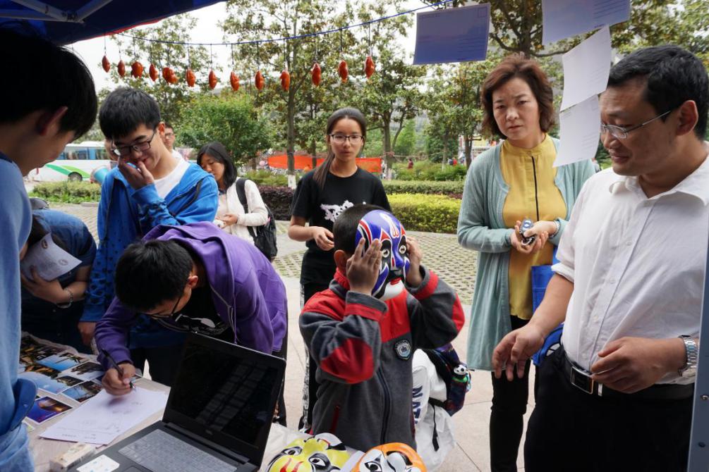 5月7日上午11点,历经2个小时的充分准备,展台架设、道具摆放、设备调试等均已到位。各个展台也迎来了他们的第一拨客人,同学们积极地邀请他们参加所属展台准备的精彩活动,在小游戏结束后送上礼物以示心意,并希望他们能为自己的展台投上宝贵的一票。渐渐地,在分发宣传单的同学的努力下,越来越多的观赏者来到我们的展台前,每个展台也都各展神通: