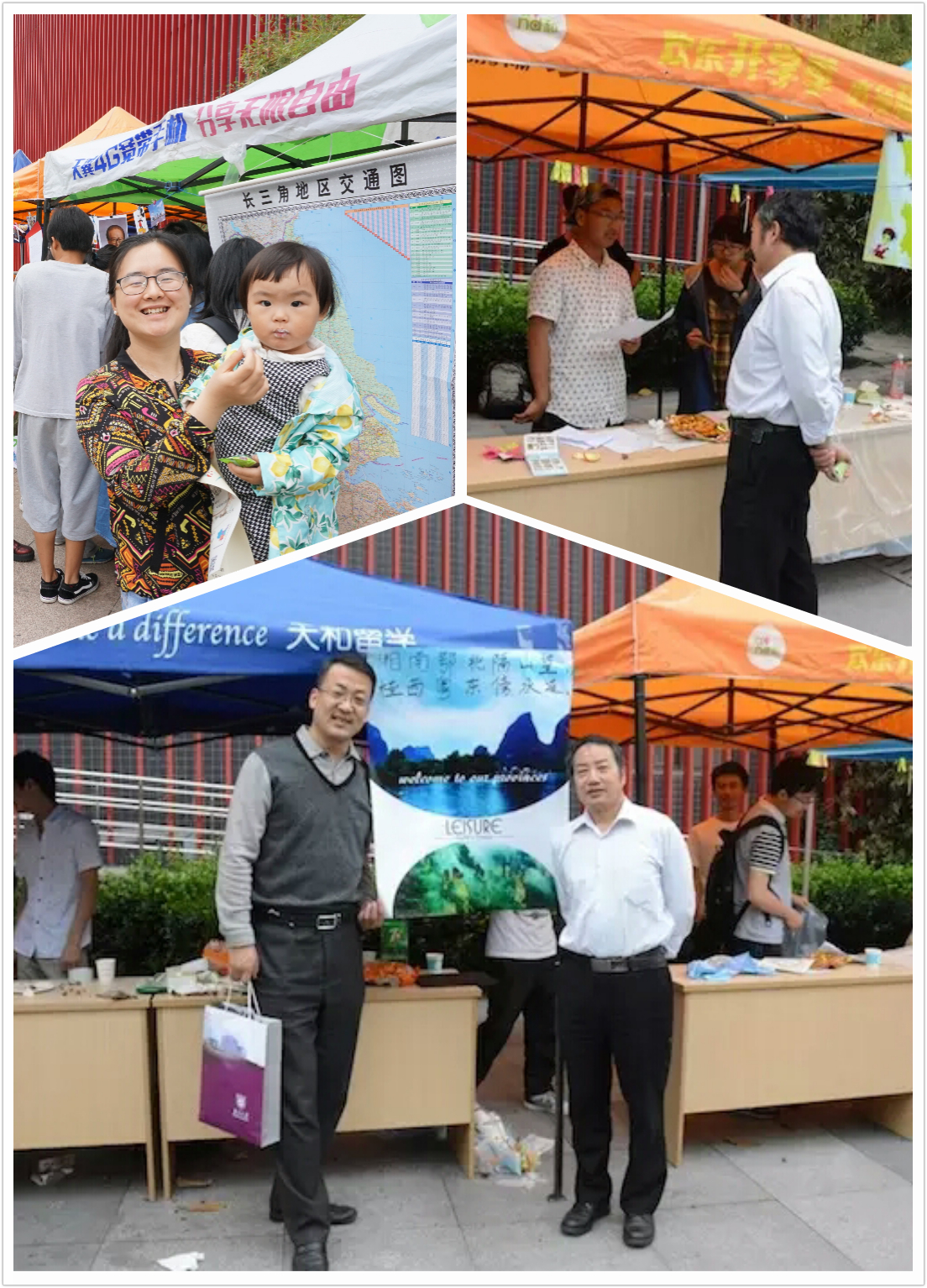 正当游客稍稍放缓脚步,展台一侧走来了地理学院的各位老师:院长鹿化煜老师、党委副书记杨得志老师、副院长柯长青老师、辅导员李岩老师、教务员王玮老师、班主任张秀英老师和张宏磊老师,光临我们的展台。老师们的到来就像是给现场又打了一记强心针,争先恐后地将老师们拉向自己所在的展台,而老师们也是十分乐意地莅临所有小组,品尝全国各地的经典美食,和大家一起做游戏,并关切地询问相关的活动组织情况,给予了足够的肯定。