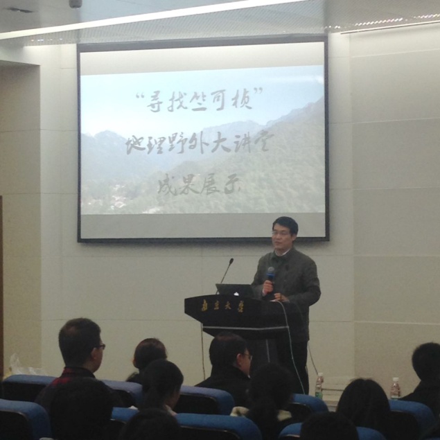 2016级同学到达安徽省池州市九华山地区进行“寻找竺可桢——地理野外大讲堂”活动。为展示同学们两天的学习心得与收获,16级全体学生于12月7日在昆山楼报告厅举行了九华山实习展示报告会。