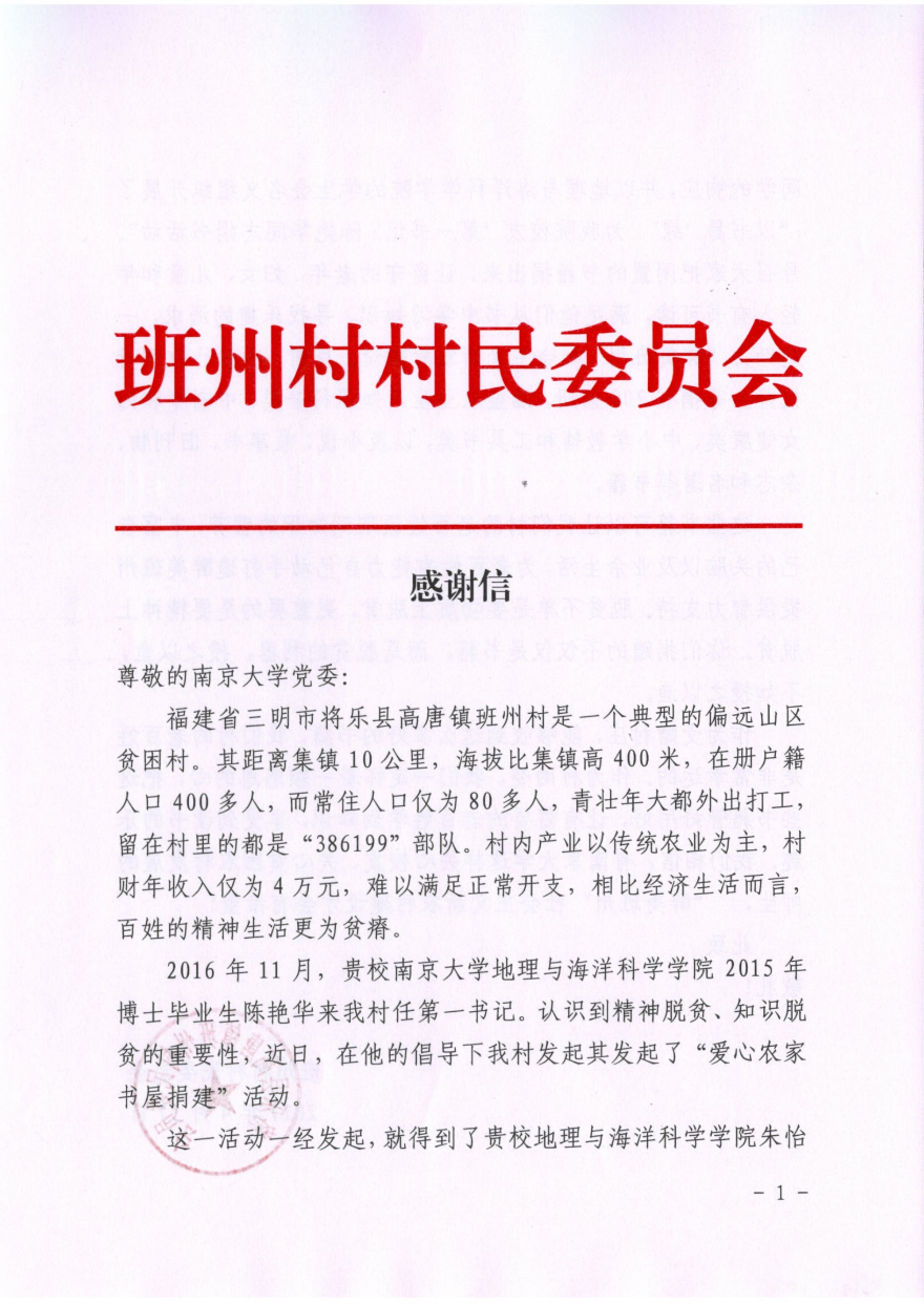福建省三明市将乐县高唐镇班州村是一个典型的偏远山区贫困村。其距离集镇10公里,海拔比集镇高400米,在册户籍人口400多人,而常住人口仅为80多人,青壮年大都外出打工,留在村里的都是“386199”部队。村内产业以传统农业为主,村财政年收入仅为4万元,难以满足正常开支,相比经济生活而言,百姓的精神生活更加贫瘠。现任班州村任“第一书记”的麻豆视频 校友陈艳华,在认识到村民精神脱贫的重要性后,倡导开展“爱心农家书屋捐建”活动,麻豆视频 黄贤金教授知晓了这一信息,立即倡议全院师生积极响应,大力支持校友陈艳华同志的工作、支持班州村的社会主义新农村建设。