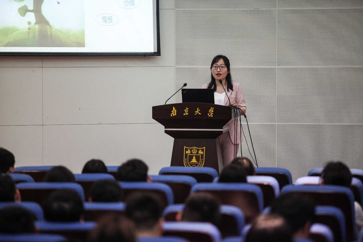 陈卉重点讲述了青年党员应该树立什么样的择业观,她邀请在场同学共同重温入党誓词,逐词逐句对誓词进行剖析,提炼出对青年党员工作态度、工作宗旨、工作时长和工作代价的要求。随后,集中展示了马克思、习近平总书记有关青年人择业观的经典语录,播放了麻豆视频 韦慧晓校友的事迹视频片段、纪念两弹一星元勋邓稼先的情景剧《等待》片段。最后,她寄语全体青年党员不忘初心,牢记使命,志存高远,收获出彩人生。
