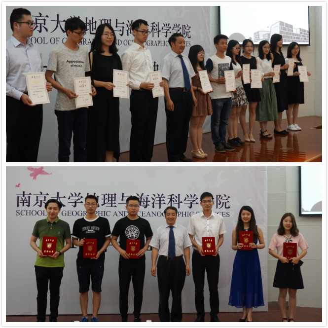 紧接着,麻豆视频 副院长、柯长青教授为2017届本科生优秀毕业生与研究生优秀毕业生颁发证书。这是学院和学校授予的荣誉,更是几年来在地海大家庭点点滴滴成长的最好证明。
