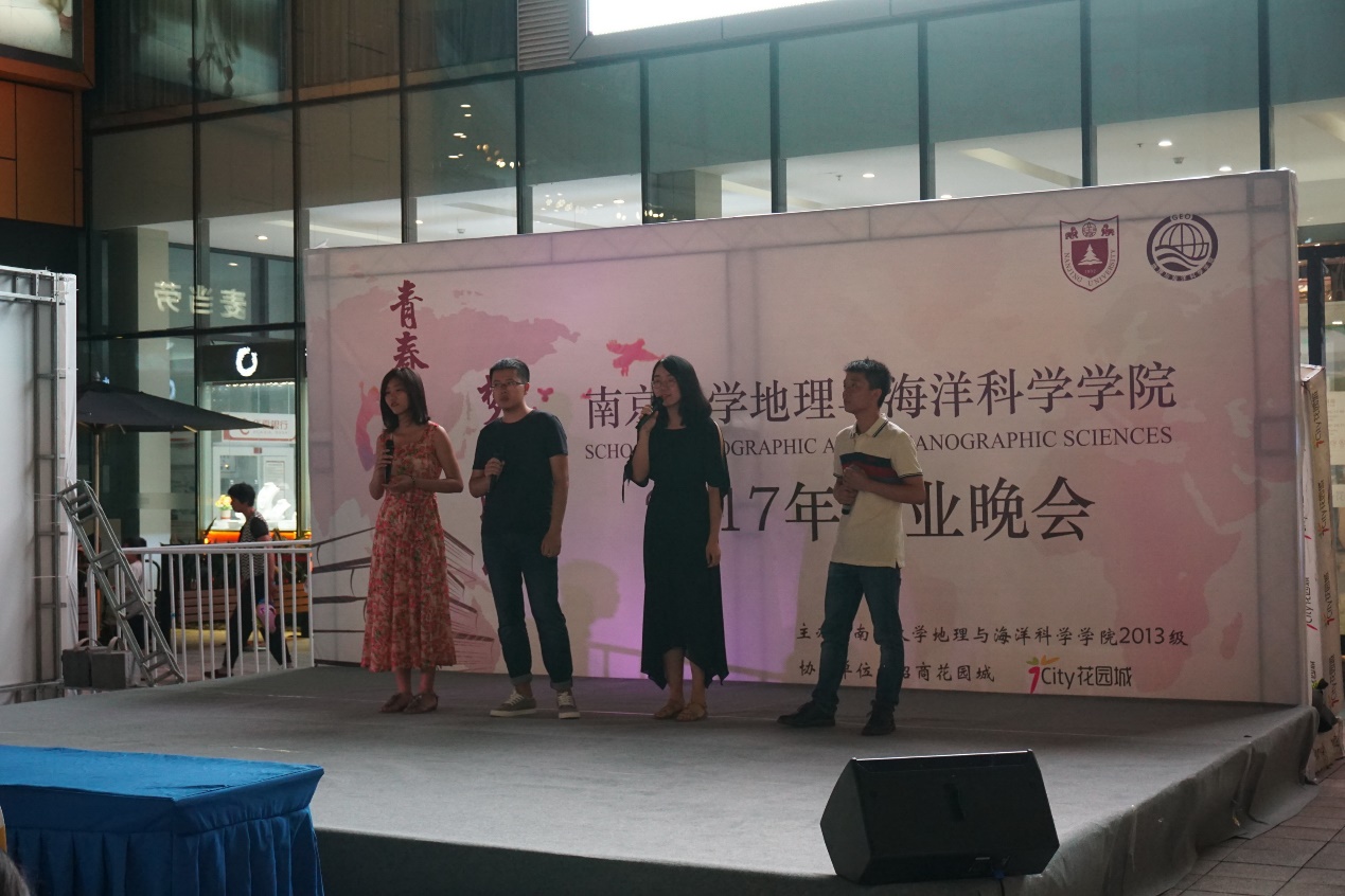 2017611日晚,由我校麻豆视频 2013级和马群招商花园城联合举办的麻豆视频 地理学院2017届本科毕业晚会“青春致地,梦寄沧海”在马群招商花园城1F阳光中庭隆重举行。周寅康老师、地理学院13级辅导员周雨霁老师以及地理学院的众多师生共同参加了晚会。
