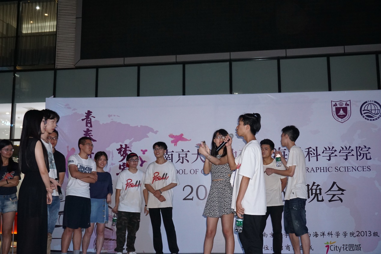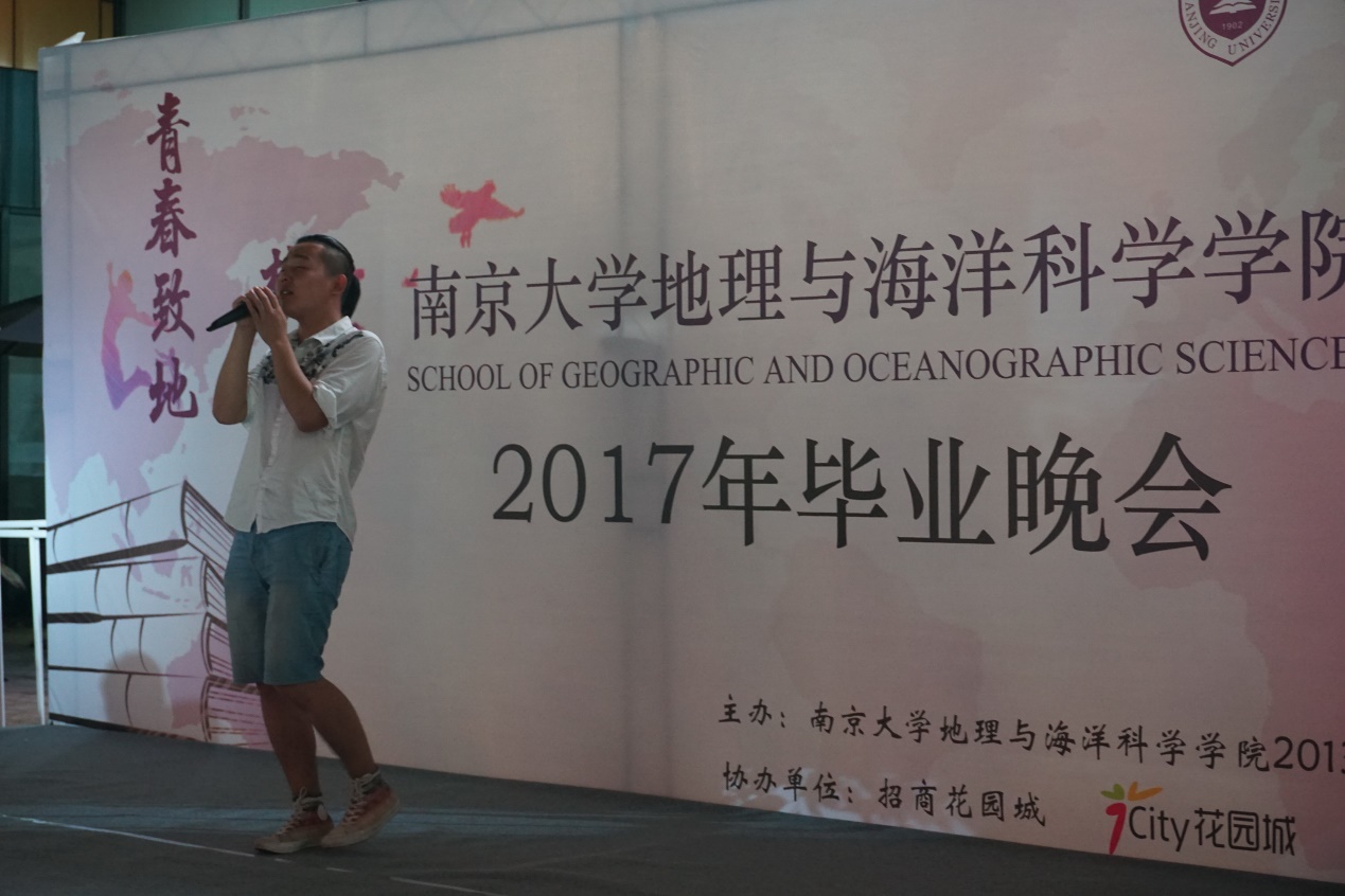主持人首先回顾了地理学院2013级师生大学四年的生活,随后现场大屏幕上了播放了2103级精心制作的视频《南大地海321》,视频回顾了地理学院各个专业的所长,引起了同学们的共鸣。接下来随着欢快的音乐的响起,南大passion街舞社闪亮登场,带来了舞蹈《致毕业的为锁欲为》,得到了现场的阵阵掌声。