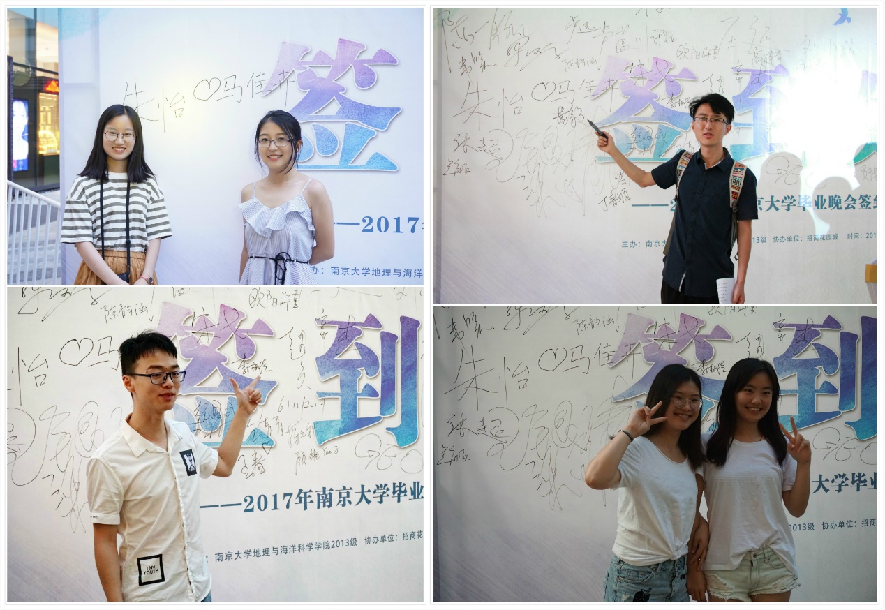 晚会的最后,同学们纷纷在心愿卡片上写上了自己对于未来,对于地理学院,对于同学老师的美好祝愿,一一挂在了集愿树上,表达自己的美好祝福。晚会结束后,地理学院2013级全体学生和老师在舞台合影,同学们也纷纷合影留念,珍惜大学里最后的时光。欢笑、拥抱、祝福……南大地理人即将面临分别,但这一次我们不说再见,因为我们会一直带着南大的记忆,相约在未来的美好相遇。