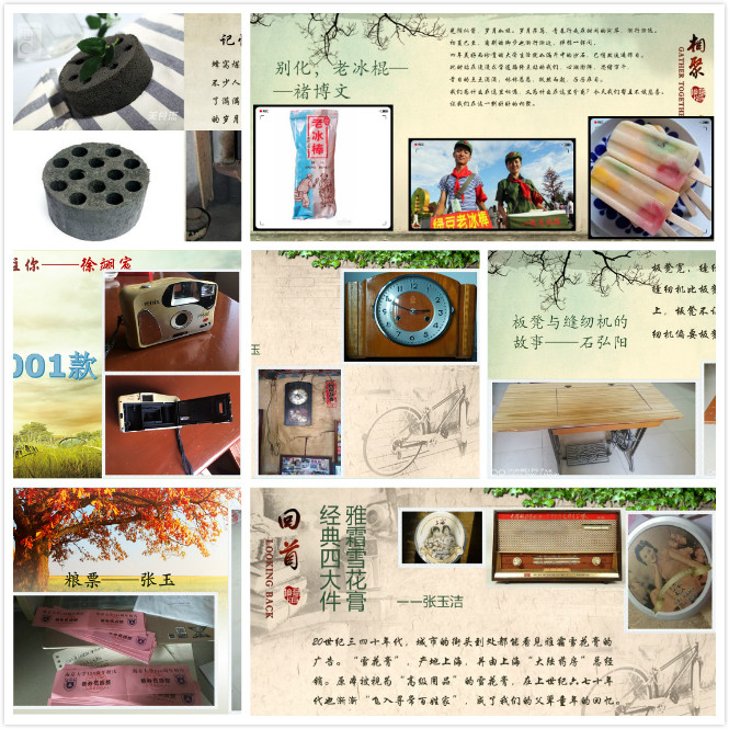 参与展示的,还有褚博文同学的“老冰棍”、周宇同学的“蜂窝煤”、石弘阳同学的“板凳和缝纫机”、张玉洁同学的“四大件和雪花膏”等。