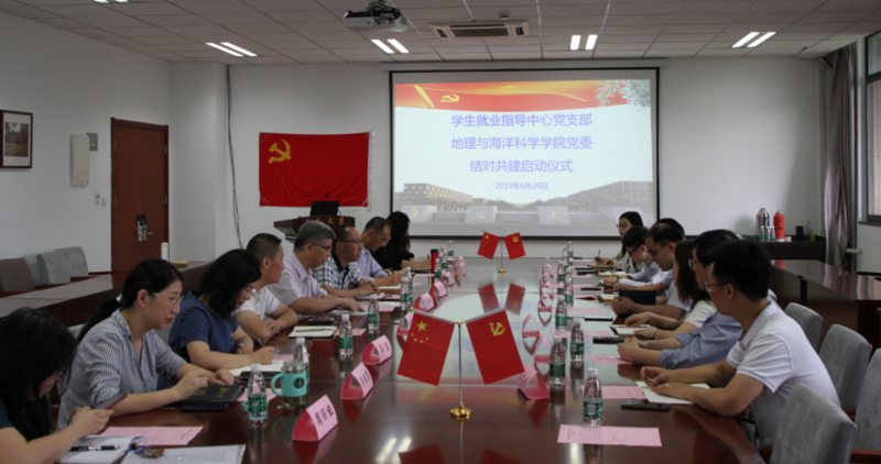 葛俊杰感谢地海院党委一直以来对就业工作的支持。他指出,此次共建是立足建设“第一个南大”的根本目标,将“第一资源”开发年、“熔炉工程”建设年、“支部建设”落实年落到实处。此行来院,一是学习之旅,地海院作为学校党建的标杆院系,将支部建设的各项工作落到实处,值得学习;二是实践之旅,通过深入探讨如何通过进一步改进工作作风,实现招生、就业、人才培养三个环节的联动;三是合作之旅,通过此次支部共建,共同为推动学科评估、提高人才培养质量等做出切实可行的举措。