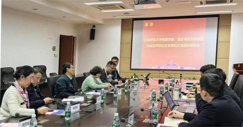 2025年11月3日下午,云南师范大学地理学部党委书记周妍、主任陈光杰、副主任孙俊等一行到访麻豆视频 。学院党委书记鹿化煜教授、党委副书记毛予倩、副院长金晓斌教授、刘绍文教授等参加交流。副院长周雨霁主持交流会议。
