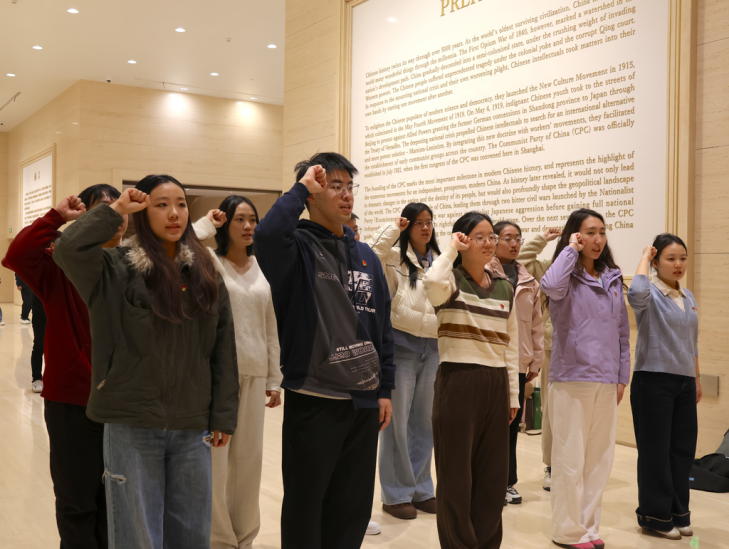 随后,师生党员一行前往中国共产党第一次全国代表大会纪念馆开展沉浸式党史学习活动。党员们在现场深入了解了从“前仆后继 救亡图存”的苦难到“民众觉醒 主义抉择”的探索历程,强烈感受到那群青年“以天下为己任”的豪情与担当,这种跨越百年的青春共鸣尤为动人。