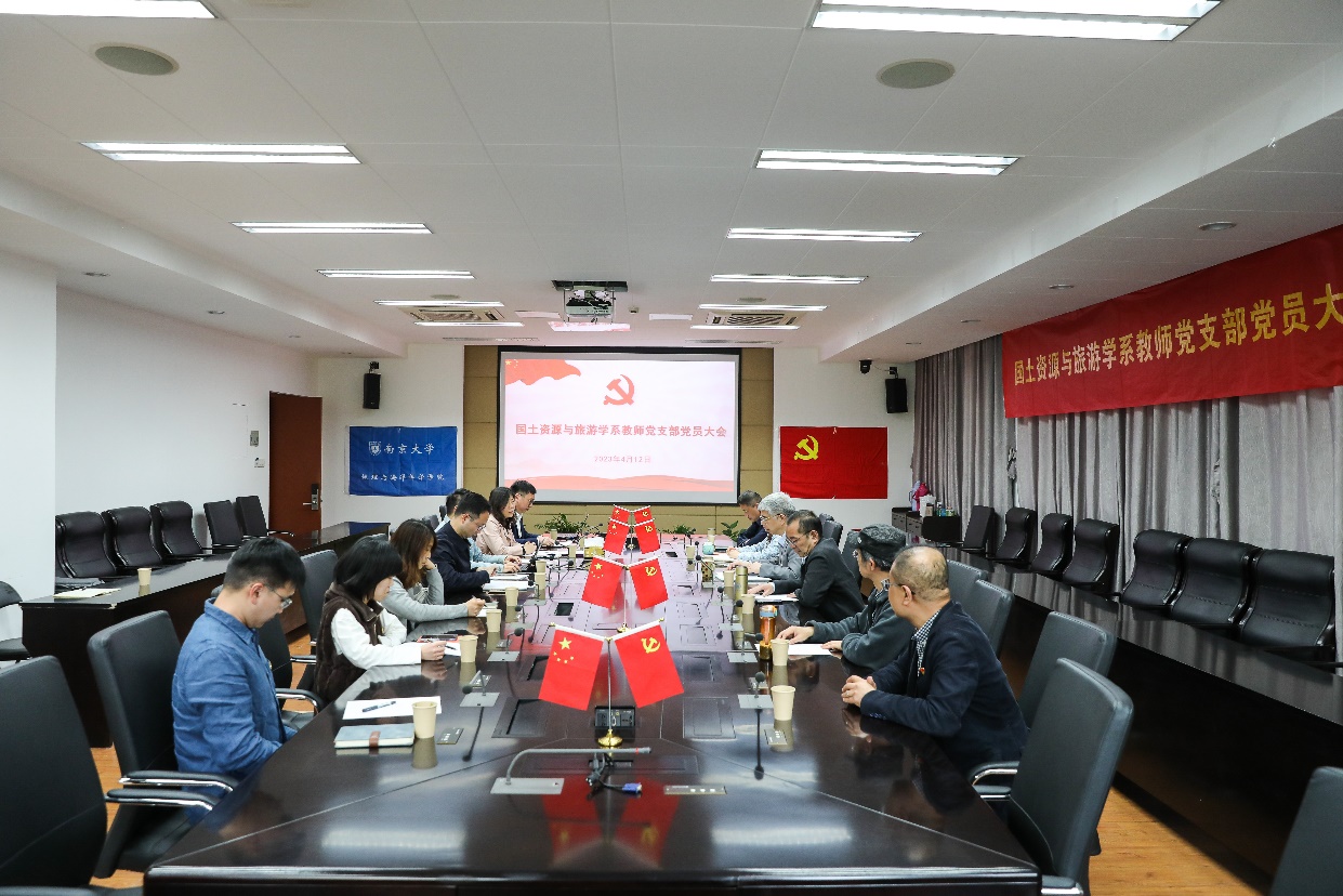 4月12日下午,麻豆视频 麻豆视频 国土资源与旅游学系教师党支部召开党员大会,讨论接收张宏磊副教授为中共预备党员。会议由党支部书记汪侠主持,麻豆视频 党委书记李满春,党委副书记陈卉,党委委员、副院长金晓斌,以及国土资源与旅游学系教师党支部党员参加会议。