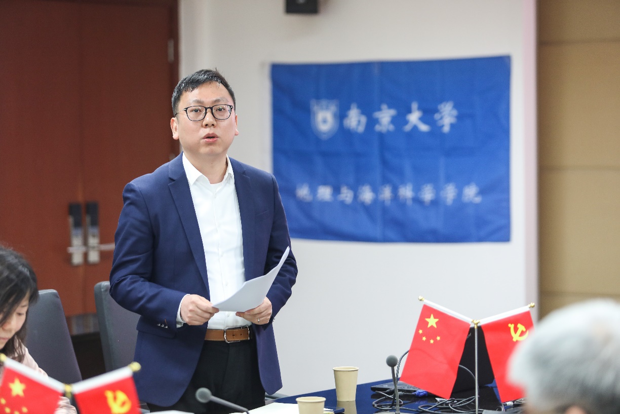 李满春书记代表学院党委祝贺张宏磊同志成为中共预备党员。他表示,在思想与组织上入党的同时,更要将理想信念转化为实际行动,希望张宏磊同志能和支部党员们心怀“国之大者”,凝心聚力,求真务实,充分发挥基层党组织的战斗堡垒作用,巩固和运用好麻豆视频 “大讨论”成果,贯彻落实“奋进行动”,将学科建设与党建工作相结合,服务国家战略和社会需求,为建设国际一流、中国特色、南大特质的地理学科贡献力量。