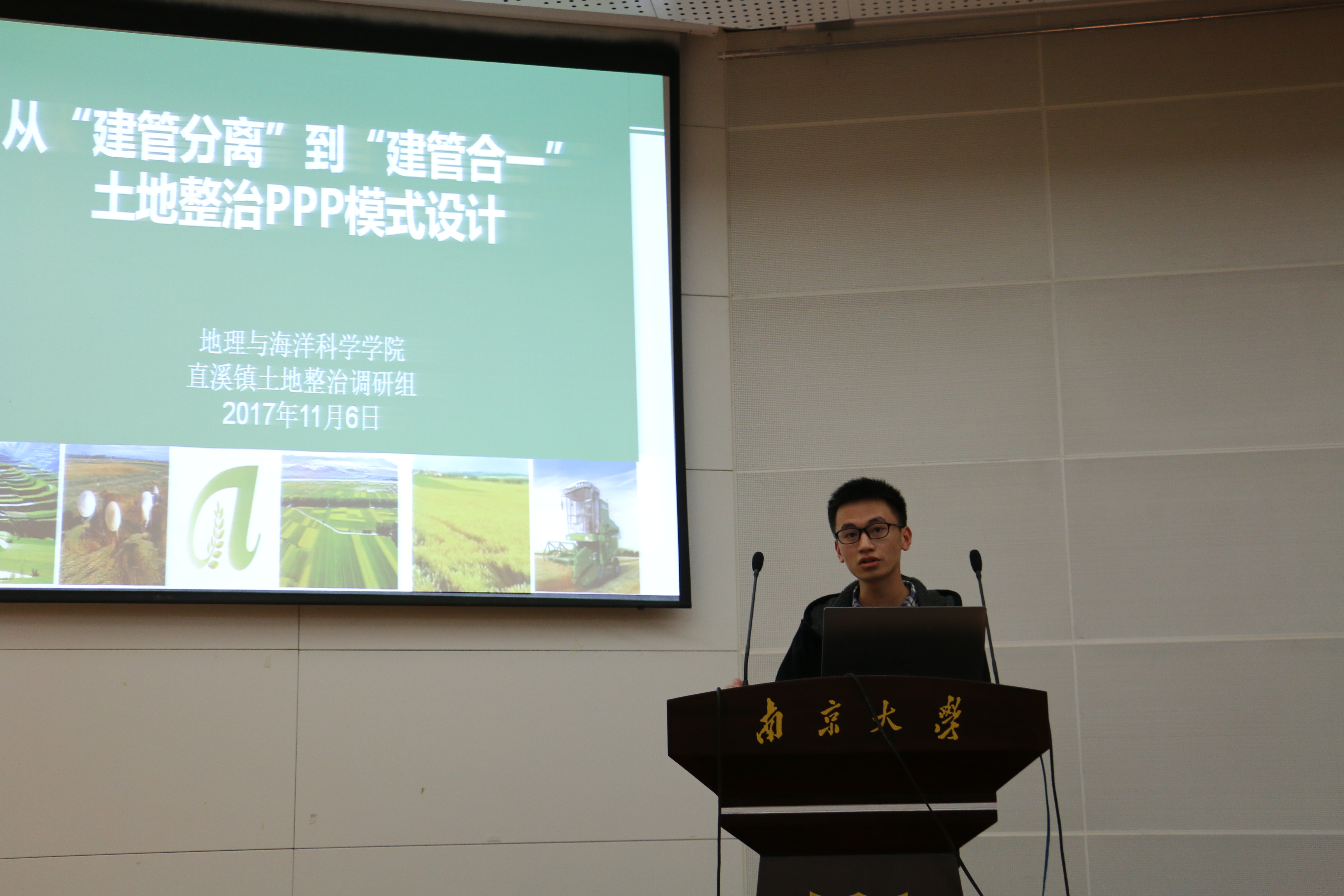 省级重点项目、麻豆视频 社会实践双十佳优秀团队"直溪镇土地整治调研组"的罗勇同学作为压轴,跟大家分享了深入挖掘实践成果的经验。他们在选题思考、导师指导的基础上,在常州市金坛区直溪镇开展了土地整治项目建后管护模式的调研实践。但在运用调研结果上,他们没有止步于实践报告,而是进一步以此为实例,撰写完成学术论文《土地整治项目建后管护TOT模式设计》并发表于《土地经济研究》,调研报告也被国土资源报收录刊载。