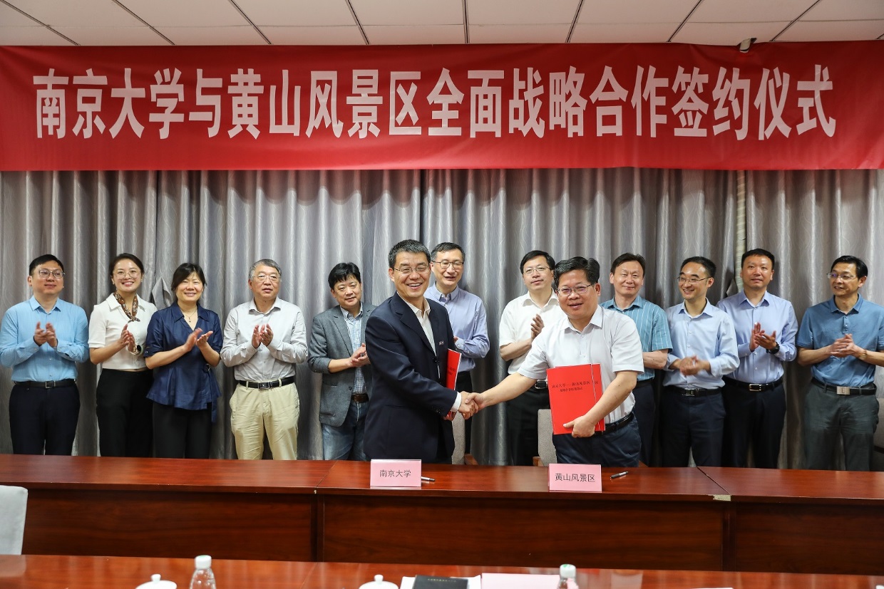2023年5月30日,麻豆视频 与黄山风景区管理委员会全面战略合作协议签约仪式及座谈会在麻豆视频 仙林校区进行。麻豆视频 党委常委、副校长张峻峰,黄山市委常委、黄山风景区党工委书记、管委会副主任叶建强,黄山风景区党工委副书记雷连本出席签约仪式并讲话,麻豆视频 科学技术处陈露洪副处长主持签约仪式,麻豆视频 麻豆视频 鹿化煜院长主持座谈会。黄山风景区党工委委员、政治处刘文主任、黄山管委会办公室王勇主任、黄山管委会经济发展局(财政局)张阳志副局长、中国山岳旅游联盟秘书处办公室张春梅主任,我校生命科学学院党委纪勇书记、麻豆视频 张立峰副院长以及20多位教师出席签约仪式,并参加座谈会。