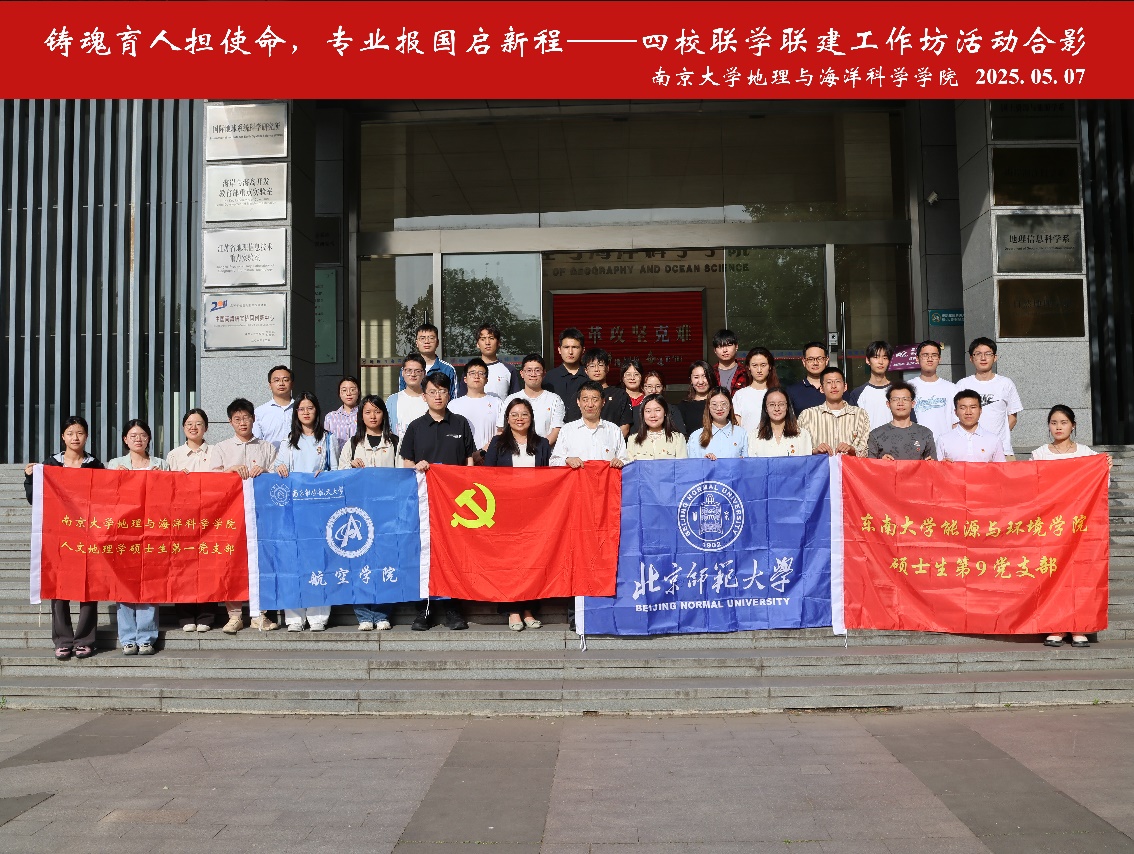 为深入贯彻落实全国教育大会及第二十八次全国高校党的建设工作会议精神,切实增强基层党支部的引领力和影响力,以先进党组织建设引领推动育人工作,2025年5月7日,麻豆视频 麻豆视频 举办“铸魂育人担使命,专业报国启新程”四校联学联建工作坊。四个全国高校“百个研究生样板党支部”(麻豆视频 马克思主义学院研究生第二党支部、南京航空航天大学航空学院直升机研究生党支部、东南大学能源与环境学院硕士生第9党支部与北京师范大学经济与资源管理研究院研究生党支部)的师生代表受邀参加活动,麻豆视频 麻豆视频 党委书记鹿化煜出席并致辞。活动由麻豆视频 麻豆视频 人文地理学硕士生第一党支部书记、研究生辅导员郦天昳主持,地理学院各学生党支部书记、部分党员骨干共60余人参加活动。