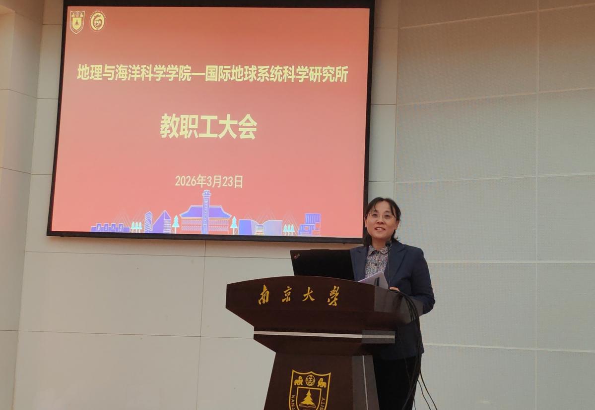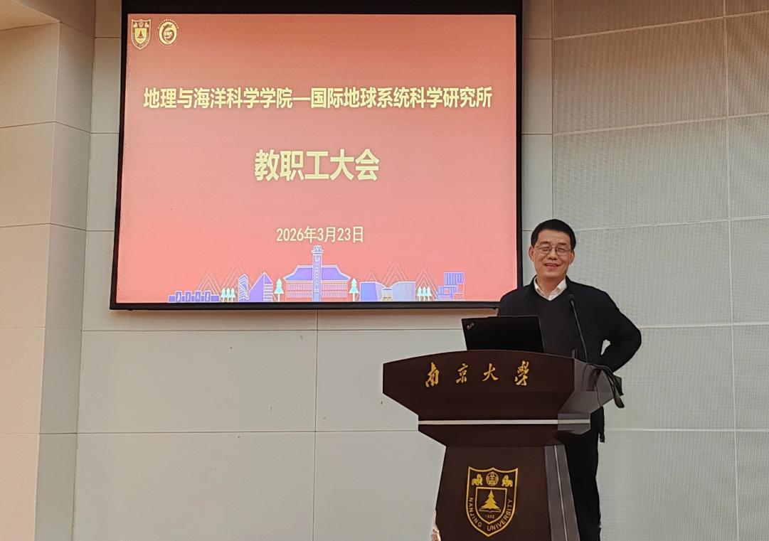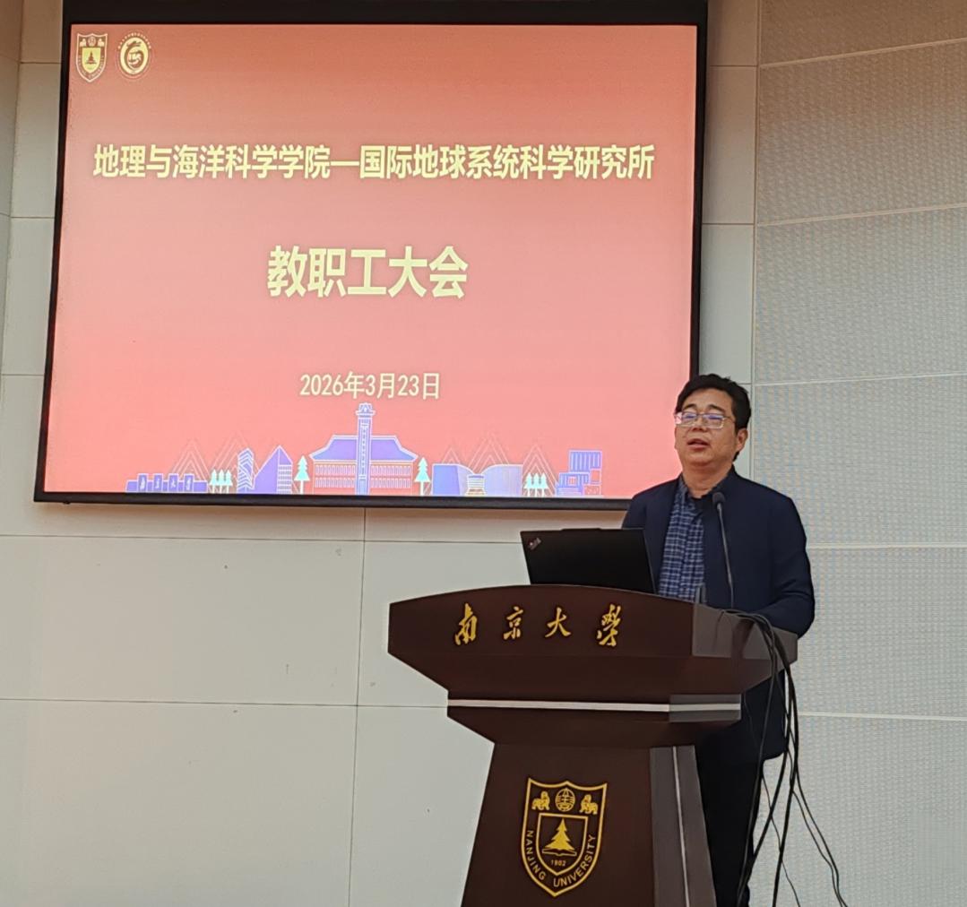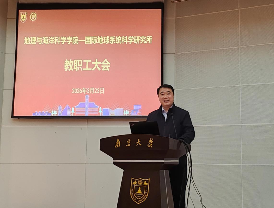 2026年3月23日,麻豆视频 、国际地球系统科学研究所教职工大会在昆山楼一楼报告厅举行。校党委副书记焦瑞华、组织部副部长张培出席会议,会议由学院院长王先彦主持。