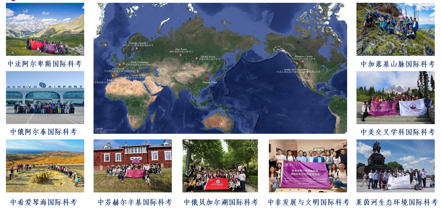 (3)重视野外工作和实践教学。地理学具有强烈的实践性。中央大学期间,地理学系就在南京周边、黄山、庐山、天目山等地开展地理学实习教学。新世纪以来,学院还开辟了江苏沿海、秦岭、黄土高原、贝加尔湖、阿尔卑斯山等国内外若干条常态化的教学实习基地和国际科考路线,夯实本科人才的实践能力。