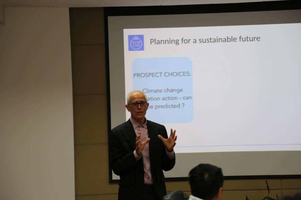 随后,Georgia Destouni院士开展了本次访问的首期“海外院士大讲堂”讲座,题目为:Planning for a Sustainable Future: The role of hydrological extremes。Vladimir Cvetkovic教授开展了本次访问的首期“引进人文社科类资深海外专家重点支持计划”讲座,题目为: Planning for a Sustainable Future: The role of human choices。