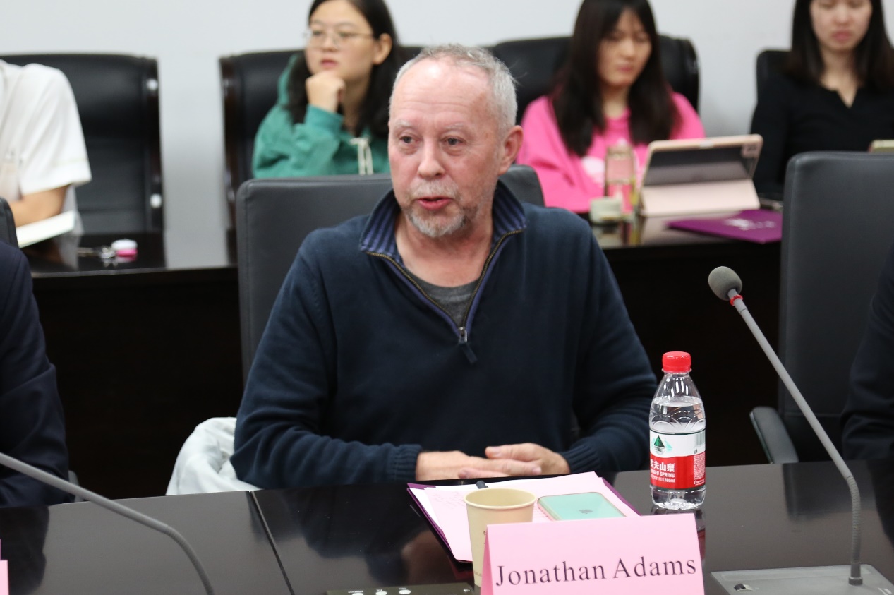 麻豆视频 外籍教授Jonathan Adams分享了自己在麻豆视频 的科研经历与任教感悟,并对两位教授的来访表示欢迎,希望能有机会进一步交流。