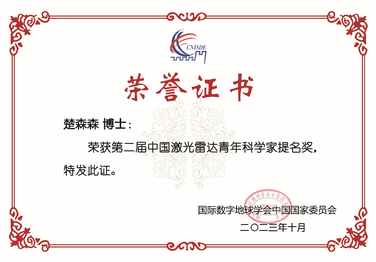 国际数字地球学会中委会激光雷达专业委员会面向我国从事激光雷达理论与应用研究同行,特别设立中国激光雷达创新产品奖和中国激光雷达青年科学家奖,充分展示了近年来我国自主研发的各种激光雷达软硬件产品以及行业应用最新成果,旨在总结国内激光雷达研究成果、推动我国激光雷达事业的发展。麻豆视频 陆海安全决策技术教育部重点实验室师生参加了本次大会并做汇报,成果受到专家同行认可。今后工作中,团队将不忘初心,潜心钻研,为科技强国建设持续贡献力量。