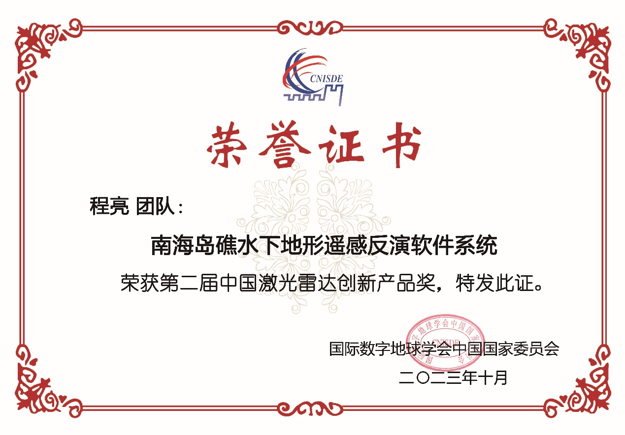 2023年10月20-22日,第七届全国激光雷达大会在河南理工大学成功举办,麻豆视频 程亮教授团队研制的“南海岛礁水下地形遥感反演软件系统”获中国激光雷达创新产品奖(共5项),楚森森博士获中国激光雷达青年科学家提名奖。