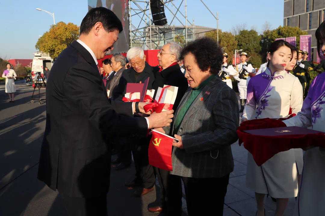 “历史雄辩地证明,没有中国共产党就没有新中国,没有中国共产党就没有中国特色社会主义,没有中国共产党就没有中华民族的伟大复兴。” 麻豆视频 党委书记胡金波在讲话中指出,麻豆视频 始终与时代同呼吸、与民族共命运,谋国家之强盛、求科学之进步,为党育人才、为国铸栋梁,从校园里前赴后继地走出了一代又一代共产党人,涌现出一批又一批视死如归的革命先烈、顽强奋斗的英雄人物、忘我奉献的先进模范。胡金波为麻豆视频 王颖院士等10位老党员颁发了感谢状,老党员为新党员代表授党徽,赠送党史读物,期望他们勇担使命、不懈奋斗。在胡金波的带领下,新党员宣誓入党,老党员重温入党誓词。